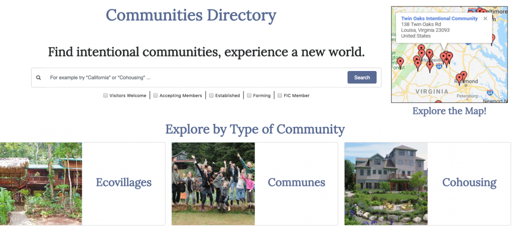 From over 1,000 intentional communities of a variety of types, focuses, philosophies, geographies, and methods, people are finding ways to gain perspective on and to act on sustainability, cooperation, and possibility.