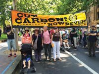 While our valley is mining-free, thousands of residents and farmers in neighboring valleys across the Hunter Valley are fighting the devastating impacts of vast open-cut (open-pit) coal mines and the threat of gasfields with severe impacts on their environments and health. The Hunter is one of the world’s largest coal-exporting regions, with hundreds of millions of tons of coal exported from the port of Newcastle annually to North and East Asia. The region is also the home of coal-fired power stations that have historically been the major source of Australia’s electricity. Together these industries make the Hunter region one of the world’s climate change hot-spots. Many times our members have joined frontline action against coal and climate change including blockading gasfields in the nearby town of Gloucester with local residents, and other peaceful blockades and lock-ons at coal mines and coal export terminals in Newcastle and elsewhere.