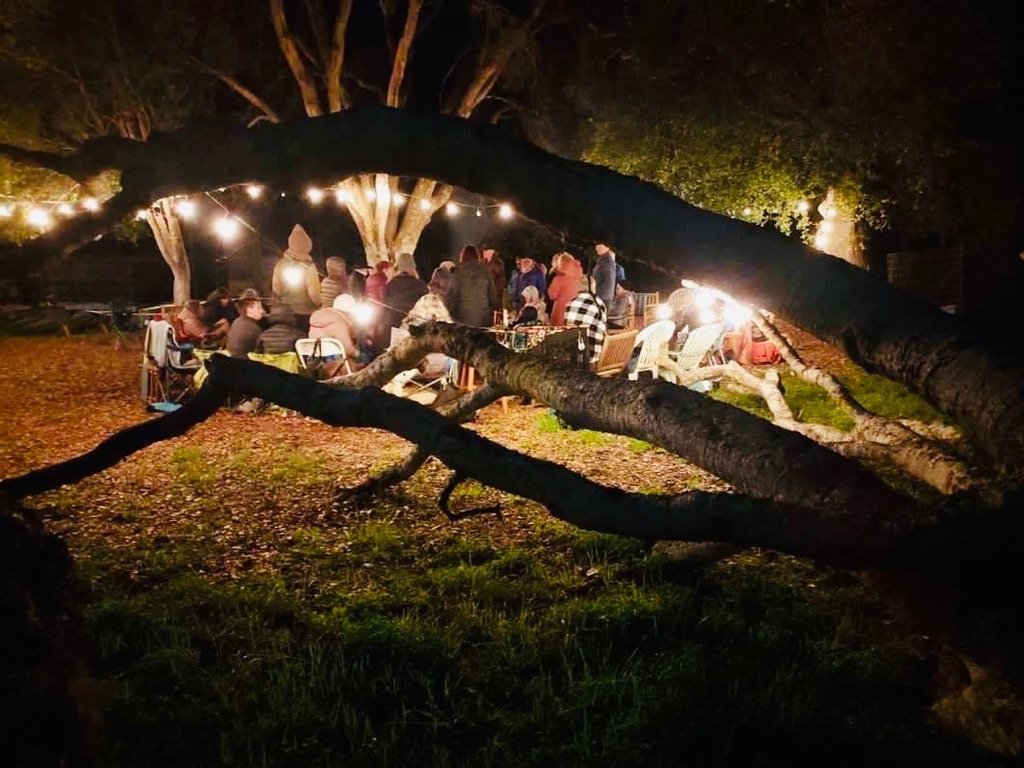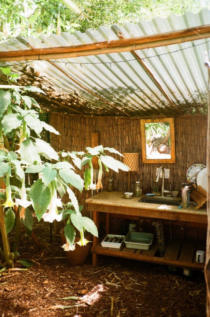We have an outdoor classroom for small-scale events, several permaculture-based food forest orchards and gardens, an infrared sauna, cold plunge, hot tub, and outdoor bathtub overlooking our beautiful meadow. We’re actively working on rainwater catchment systems, humanure composting, water retention landscaping, oak woodland restoration, greywater systems, and dreaming of a cob sauna.