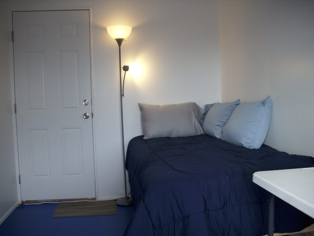 The Savanna Hermitage currently has openings for two small furnished private rooms available for individual residents and guests, each with a separate outdoor entrance, comfortable twin bed with complete bedding, shelves, clothes rack, table, and floor space for solo meditation and yoga. Each room is equipped with a meditation zabuton mat, seiza bench, crescent zafu cushion, and yoga mat.