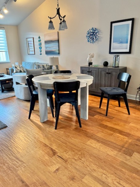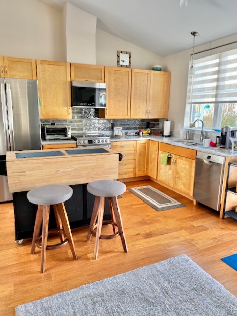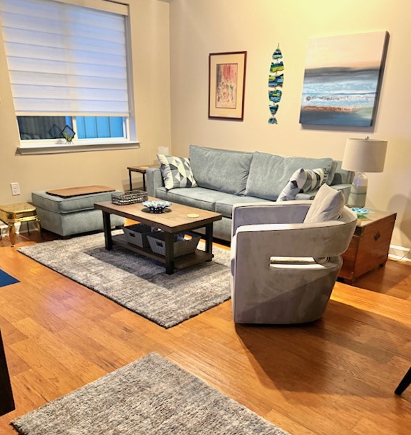 A rare find – 2 bedroom/ 1 bath home for $420,000 available within Village Hearth Cohousing – a 55+, LGBTQ+ and allies community in Durham, NC. With vaulted ceilings and two large skylights, it lives larger than its 989 square feet. New HVAC system, all SS appliances; includes washer/dryer, large stone patio and covered front porch; custom designer closets and abundant storage throughout home.