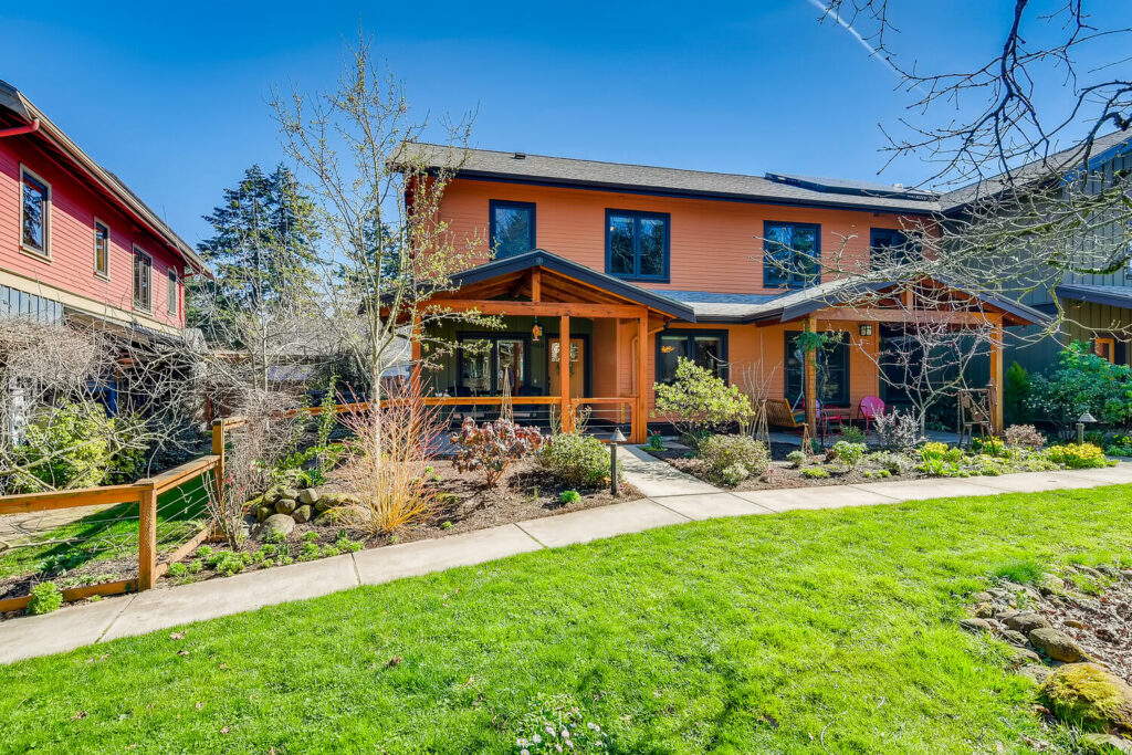 Remarkable end unit townhome in the Cully Grove Community. Award-winning architecture. Highly efficient green living. Beautiful wood trim and floors. Stainless appliances. Wonderful outdoor living with covered front porch and private backyard. So much to offer in this community! Cully Grove Intentional Community offers a shared common house with a meeting room, kitchen, and guest apartment. Raised garden beds, fruit orchard, play area and more!
