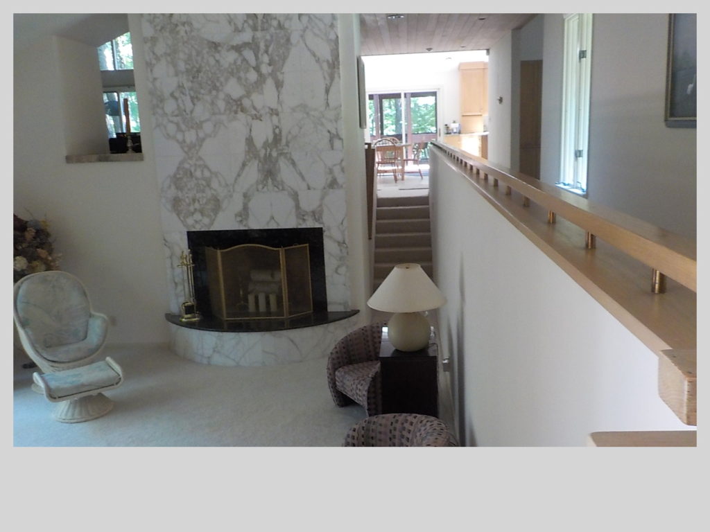 Living Room 20.5′ x 16′ with Marble Fireplace & Vault Ceiling