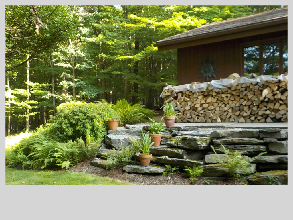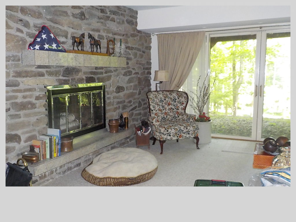 Family Room 21′ x 17’6″ with Fieldstone Fireplace, Cedaur Vault Ceiling