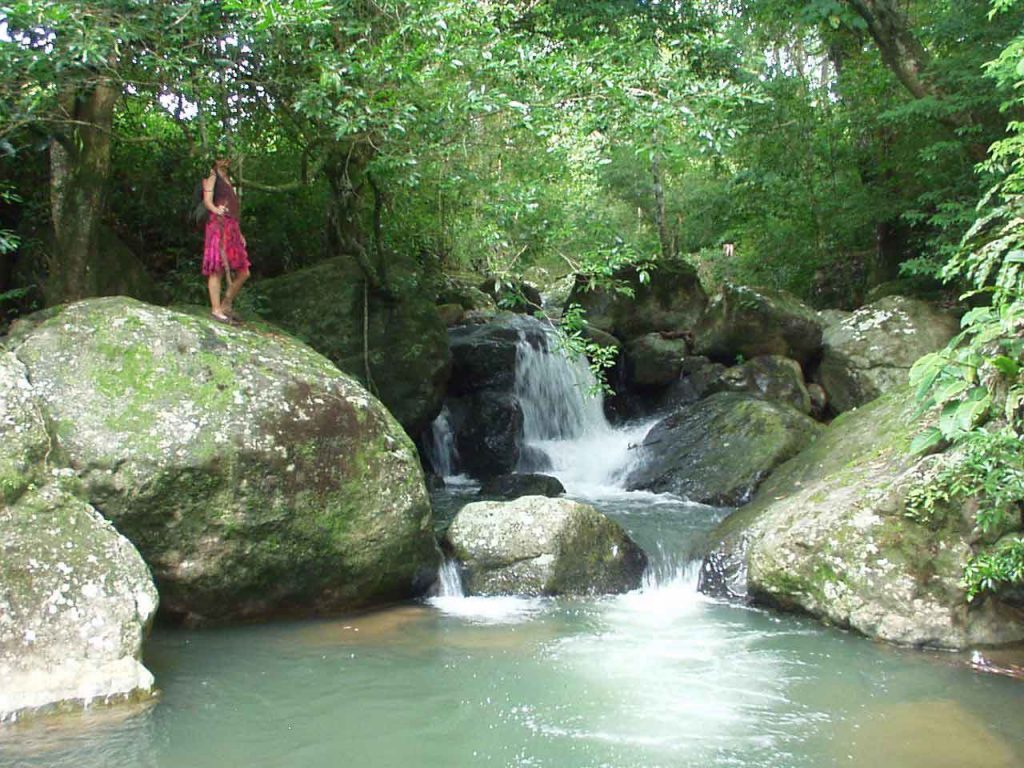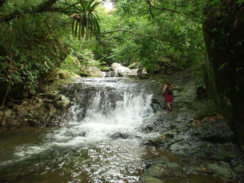 Lots of waterfalls and fruit trees and privacy yet a short 5 minute walk from a town. This property is just over 3 hectares ( 8 acres) of land at the outer edge of the village Santa Fe Veraguas Panama (population about 2,800 with a small percentage of non-Panamanians living there) The land is bordered on 2 sides by a small cascading river, or βquebrada,β and has several different types of structures (cane house, shop/barn, animal pens) totaling almost 5000 sq. ft. of metal roofs. There is a superb view of the mountains and National Forest which surrounds the village in three directions. Up until the late 1990βs the property was used to raise organic hogs and make sausage so there is good infrastructure to the land and some covered buildings including a small very rustic cane house with metal roof. There are 3 sources of water coming to the property: the municipal tap water, municipal farming water, and the river (which is so clean that the townβs water comes from it). In addition, the area gets over 100 inches of rain a year which can be captured in the large cement cistern on the land. The property also has 3-phase 480 volt electric service (an unusual level of service for heavy machinery from its βsausage factoryβ days) and is directly on a road that goes right into Santa Fe.