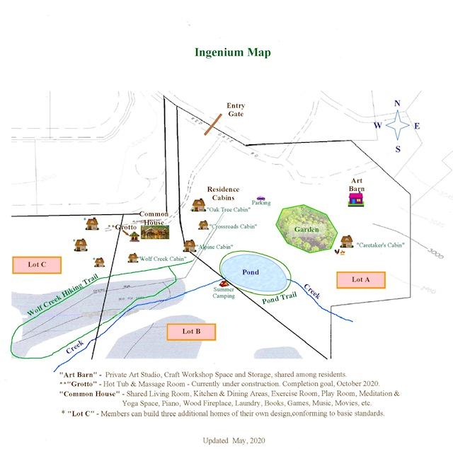 Here are all the details: Ingenium is a small, innovative residential village where kindred spirits share their talents and passions, and inspire each other to cultivate their healthiest, most creative selves. We are on 48 beautiful forested acres.