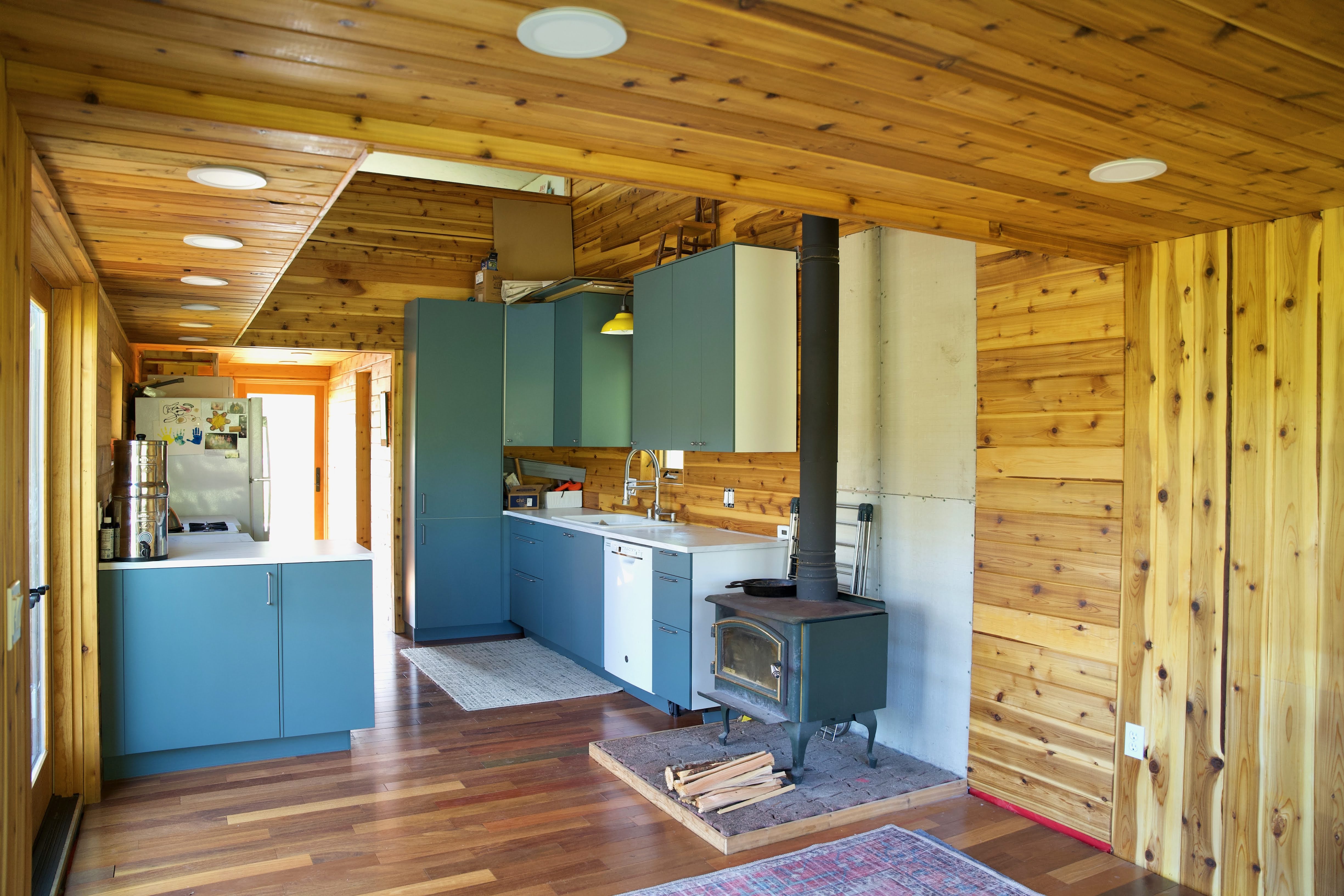 Two mostly finished cabins – 150sq/ft each, water and dedicated 6kw off-grid solar power. Gothic a-frame and 9 sided cabin with loft sleeping, wood fire stoves, new windows, wool insulation.