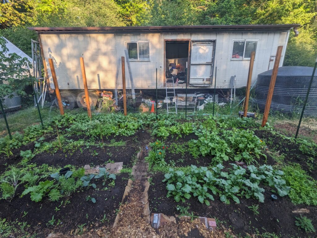 Greenhouse, garden & food forest potential – decade old Hugelkultur beds, rich soil, swales, fruit trees, and a thriving ecosystem.