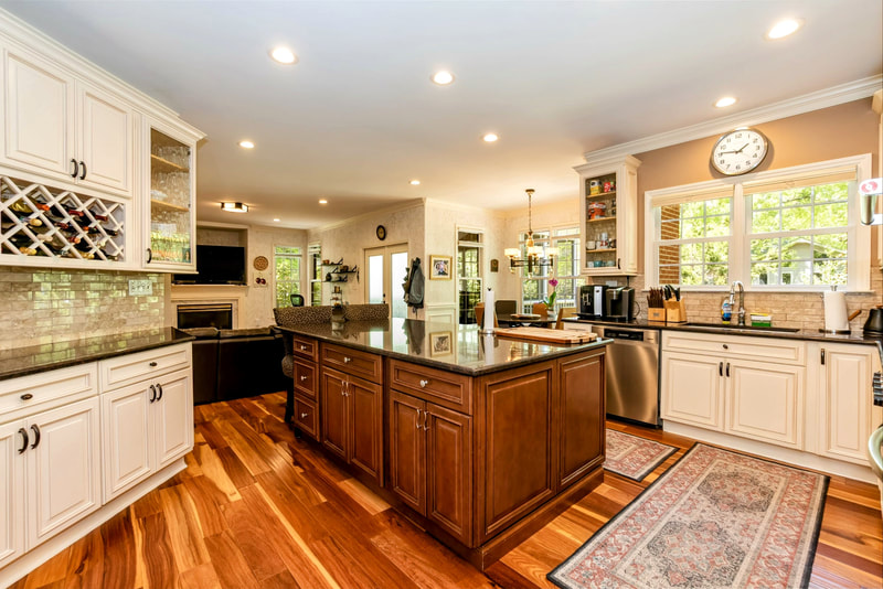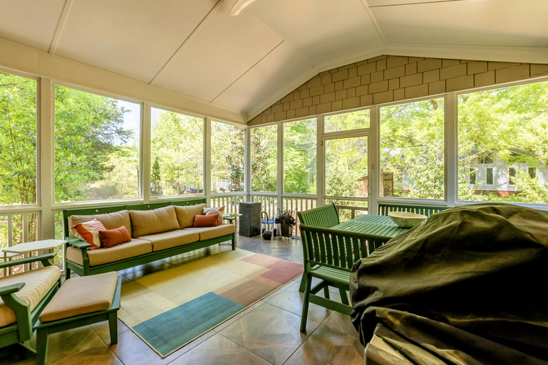 The Wolf’s gas cooktop and Kitchenaid wall oven are a cook’s dream. There is also a water dispenser over the stovetop. A large farm sink sits directly under a double window. The Miele dishwasher is virtually silent and the dishes come out dry and sparkling clean. The family room, extending from the kitchen, has a gas fireplace, and the breakfast-nook, off the kitchen and family room, is surrounded by windows. There is even a side wall of cabinets for additional storage. Double doors with privacy glass in the family room lead out into the screened-in porch, where you can entertain or greet passers-by on the pathway that leads to every house in the community. The back area has lovely plants around the perimeter of the house, including a long row of mature trees on one side, providing beauty and privacy, as well as the sighting of wonderful birds. On the second floor, the spacious primary bedroom features a vaulted ceiling and two generous, custom-designed walk-in closets. The first closet also opens to a hidden “craft room,” for hobbies and/or storage. The Italian-marbled primary bath contains a large walk-in shower, double sinks and plenty of cabinets. The laundry room, next to the primary bedroom, has a utility sink and cabinets. Two guest rooms share a well-appointed, beautiful guest bath, and a large, well-lit loft with plenty of natural light overlooks the open foyer. It is perfect as an entertainment space, home office, library or a fourth bedroom.