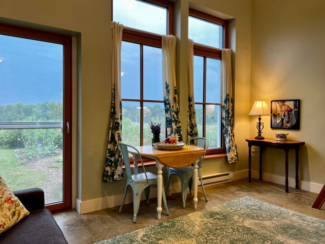 Beautiful middle unit of triplex with sweeping meadow views for sale. This sun-filled GO Logic passive house is 500 sq ft on the first level; plus an additional, spacious, full loft. Includes living/dining space, kitchen, full bathroom, bedroom with walk-in closet, additional storage in attic, and established front and back gardens.