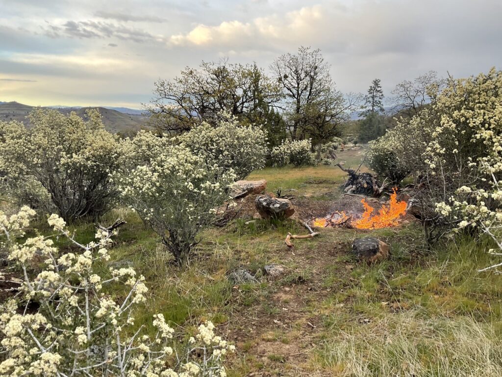 A bit more context: the property sits just under 3000′ elevation on a prominent rise with awesome expansive views over miles of the Klamath River canyon and Siskiyou crest, in a secluded and private setting that is readily accessible year round just a few minutes off of the I-5 freeway corridor between Ashland, Oregon and Mount Shasta, CA. Subdivided in 4 legal parcels in a rural residential zone, there is potential for multiple dwellings plus ADUs and utility structures, and abundant natural building material to work with. It is not well suited to commercial agriculture or livestock – but will support wildcraft/foraging and strategic plantings. It is a diverse open oak savannah biome, returning to balance through the use of low intensity fire.