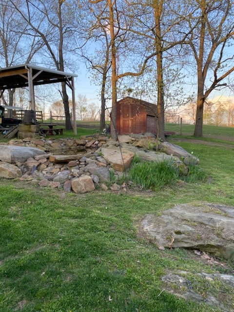 We do not live there, but come on weekends. When we are there, we have camp fires, picnics and other events. Not to mention, help with the place. We work in Cleveland to make this all possible, which we have a cabin for ourselves. We are trying to establish a permaculture environment with fruit trees, gardens, startup grape vines and fishing pond. I can send pictures of the area and cabin.