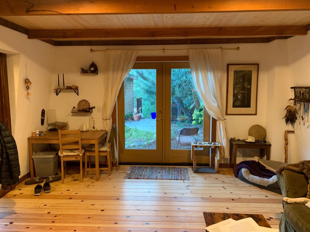 We are seeking a third housemate for our gorgeous wood and light-filled communal home in Lagunitas, CA. 10min to Fairfax, 15 to Point Reyes. We have two adjoining rooms with separate entrances available for one person to have a bedroom and an office, or for two people who don’t mind living close together. Large shared kitchen and living room, two full baths, one with Jacuzzi tub, sauna and cold plunge, decks, outdoor stage, garden in progress and 4.5 acres of oak woodland. Trail to Mt. Barnaby from our front yard. Share the home with two other community-minded, artist-professionals who love to cook and host small gatherings. $1750 all included for one person, slightly more total for two people. Collective ownership possibilities in the future.