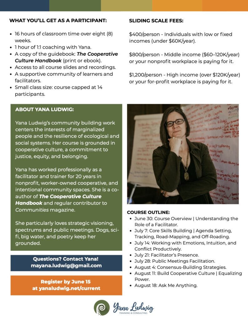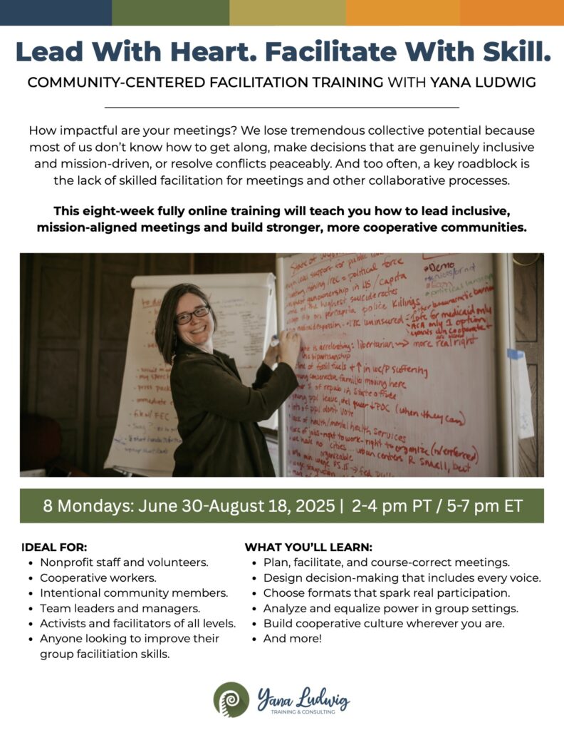 My name is Yana Ludwig, and I’m inviting you to join my Community-Centered Facilitation course this summer!