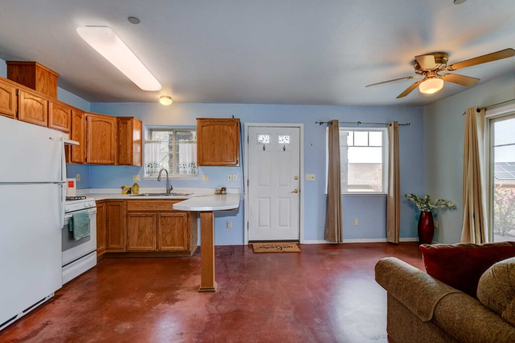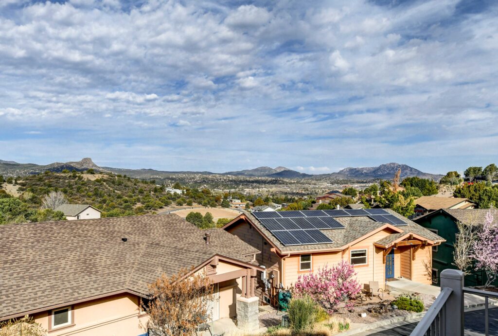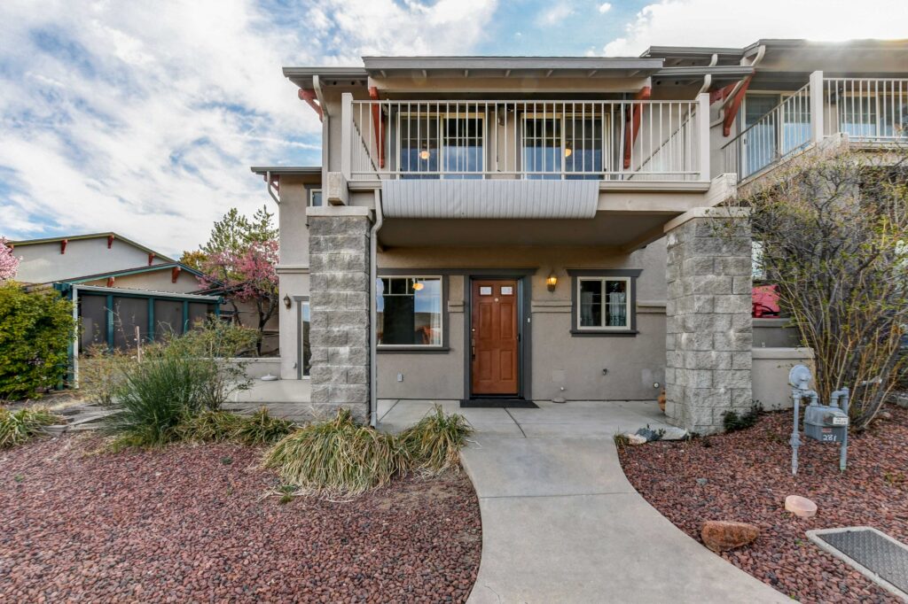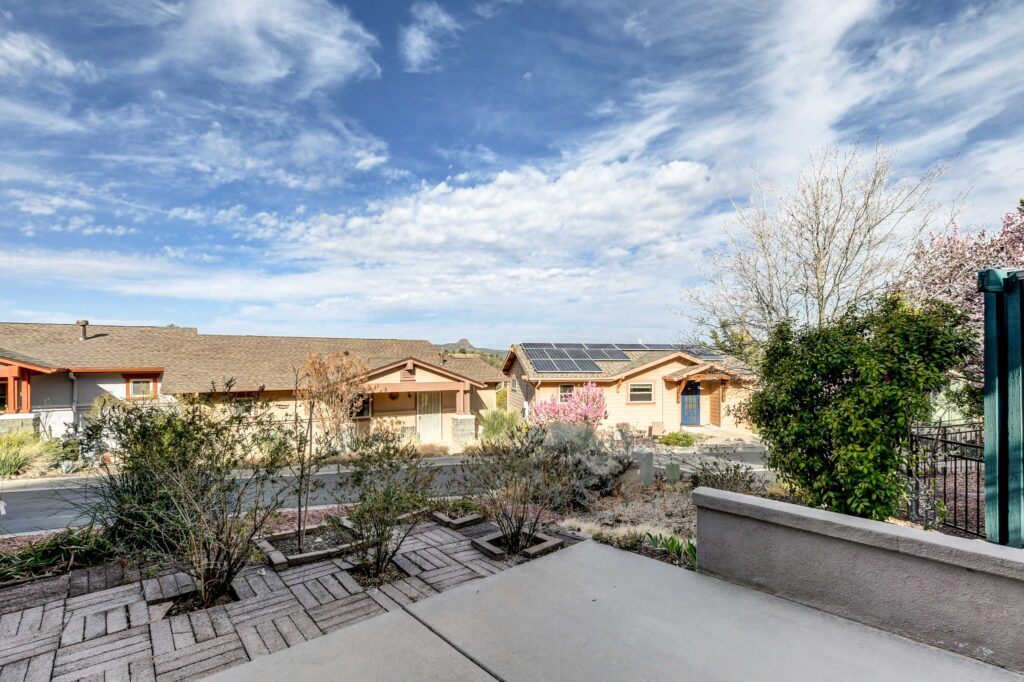Cozy 2 level, craftsman-style home, in Manzanita Village ~ Prescott’s beautiful Co-Housing Community. 2+ bedrooms and 2 baths, 1257 square feet total. This unique multi-level home is presently configured as 2 separate living spaces. It could easily be combined back to a single residence. Downstairs offers a covered front entry porch plus an open sunny patio, living room/kitchen combo, bedroom with a walk-in closet and a full bath. Upstairs is a spacious studio with kitchen, laundry, living room and bedroom. The upstairs patio boasts glorious views of Thumb Butte, Granite Mountain and downtown Prescott, a great place to spend cool summer evenings with family & friends. Many windows fill the space with natural light. Brand new roof! Adjacent to 8 acres of community owned open space. Walk to downtown Prescott and catch some dinner or some music on the Square or to nearby Acker Park.