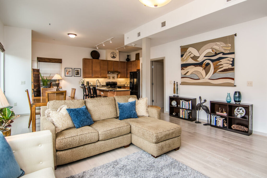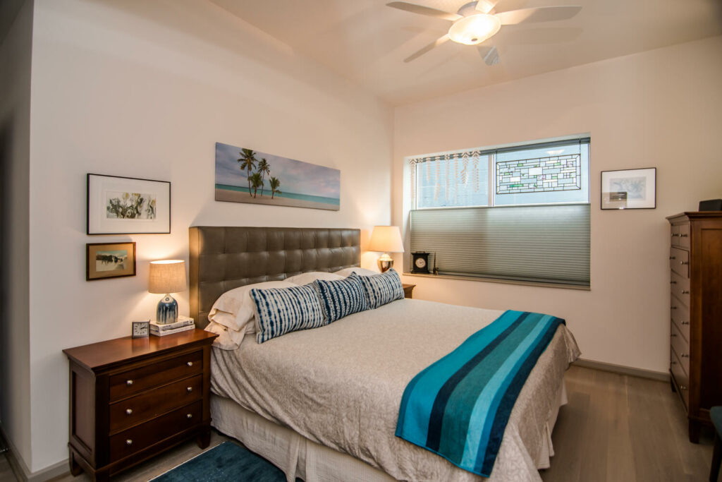 Modern: tall ceilings, gray hardwoods, open floor plan w/ incredible views & your own patio access to garden. Walk in shower, custom closet. Generous secondary rooms. Shared communal spaces abound including 2 guest suites for visitors.