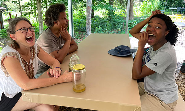 Program participants form a nested community within the village by sharing meals, social activities, their experiences, and hearth-tending tasks. Many participants come to the program during or while preparing for a life transition — questioning aspects of their current lifestyle and curious about their options and learning what’s possible. Others come to the program for a retreat from their daily life — a chance to be in a different place around curious and enthusiastic people while enjoying tasty, wholesome meals prepared by someone else. Whether drawn more to the program content or the program context, participants enjoy spending the weekend with a group of people with shared interests in our beautiful southern Appalachian forest.
