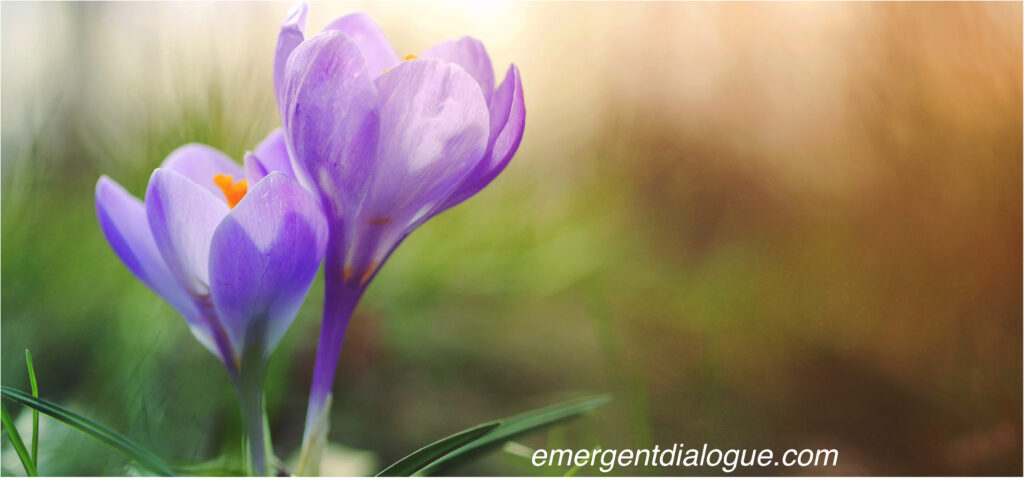 EMERGENT DIALOGUE uses clear process agreements and teachable skills-of-presence derived from Non-violent communication (NVC), Focusing, and Council Practice, and which generates Aliveness, intimacy, and discovery! The agreements we co-create and the practices we adopt depend on the goals, capacities, and willingness of the community. Emergence is a conscious shift out of Evaluative dialogue, not a one-size-fits-all technique for ‘when things are sticky or uncomfortable’, such as when there is conflict. As we develop sensitivity and individuation between self and other, we can pursue a clarified and enlivened communion with Gaia and landscape.