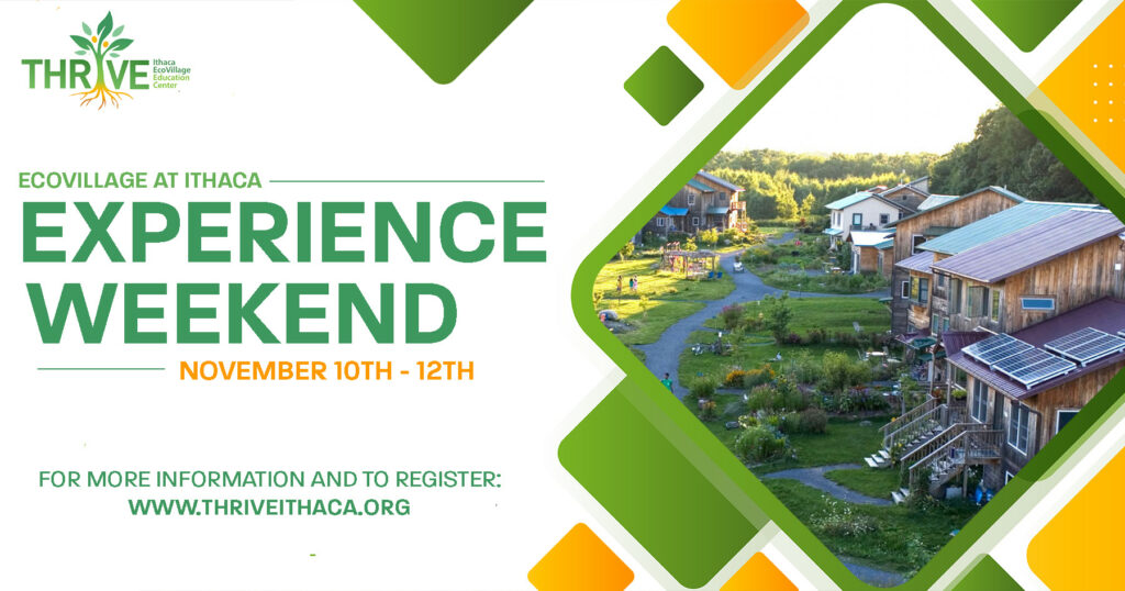 Want to explore what it’s like to live in an ecological community? The EVI Experience Weekend is an inside look at our award-winning ecovillage in New York’s Finger Lakes region. Immerse yourself in the global movement of people seeking to create positive solutions to the social, environmental, and economic crises facing our planet. Learn about EVI’s approaches to meeting human needs for shelter, food, energy, livelihood, and social connectedness in alignment with the long-term health and viability of Earth. November 10-12th, 2023 at Ecovillage at Ithaca. Learn more at www.thriveithaca.org/programs