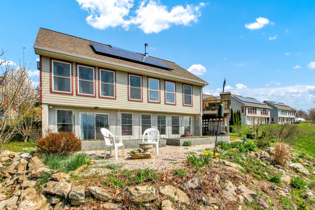 | Brilliantly sunny location with terrific views! 3 Bedroom, 2 full bath 2,194 sq. ft. energy efficient, generously loved home at Hundredfold Farm CoHousing Community. A few miles North/West of Gettysburg, Pennsylvania. This property boasts: tile floors, open floor plan, wood stove, 17 x 10 composite deck, natural wood trim, steps and solid doors, raised flower beds & rain barrels, maintenance free painted fiber cement weatherboard siding, solar panels, french doors, well insulated, natural gas fired hot water boiler, community well and septic, meticulously arranged mature gardens, tons of sun provided by two levels of carefully designed southern facing windows. CoHousing is a collaborative form of living that provides both private living spaces and shared community facilities. Hundredfold farm is a condominium where each household owns their house and land footprint, but has shared ownership (via HOA) of 75 acres of rural countryside while offering community access to winter-use greenhouse, walking paths, community garden space, community chickens and common house (used for gatherings such as meetings, shared meals and guest accommodations). Designated to foster close relationships among member households, CoHousing helps reduce expenses through shared ownership of equipment while spreading maintenance tasks among members. Respect for the environment is central to the vision of hundred fold farm so the rural setting is both an inspiration and treasure to maintain in a sustainable way. For more information about the community call listing agent regarding associated documents and or visit hundrefoldfarm.org. Please contact Suzanne Christianson from RE/MAX of Gettysburg for details. Office located at 302 York St, Gettysburg, PA 17325. Call Cell#: 717-357-0952 or Office#: 717-338-0881. |