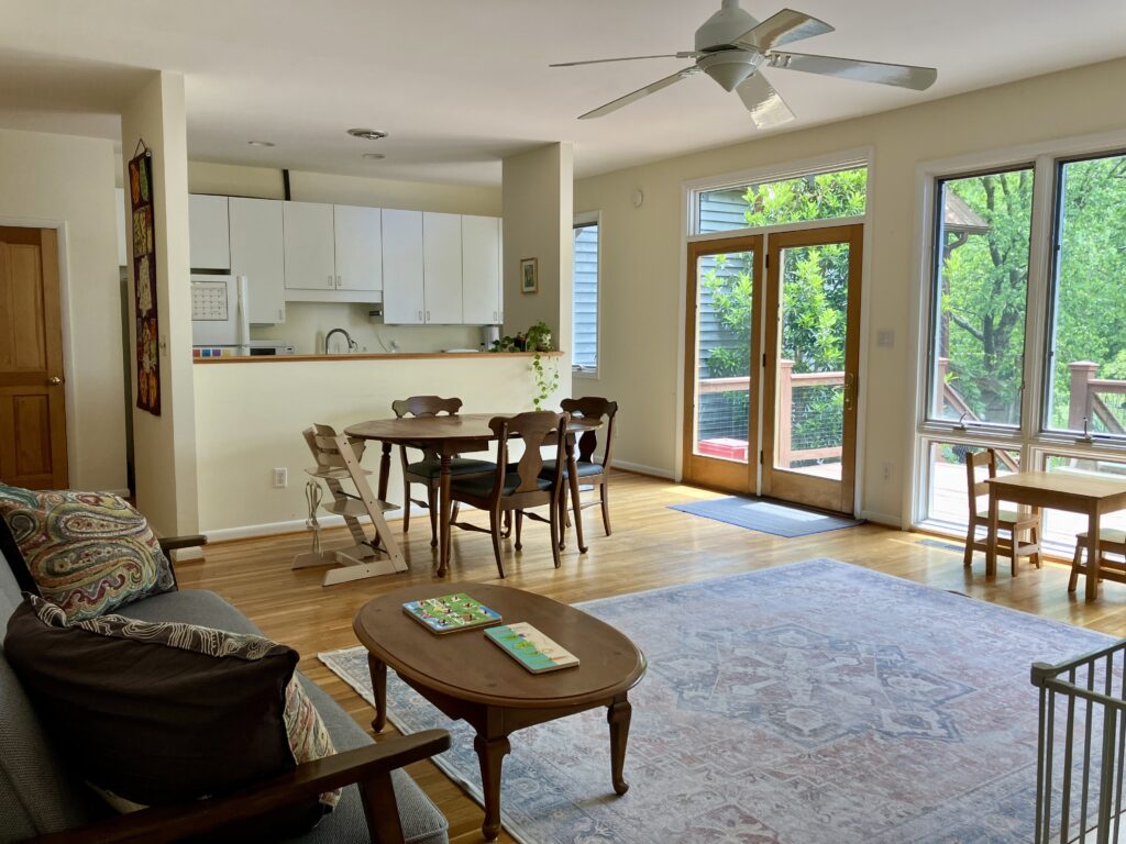 Arcadia is an intergenerational suburban cohousing community in Chapel Hill, North Carolina, established in 1994. Thirty-three families share sixteen acres, eleven of which are woods with a stream running through them. Families own their homes and lots, share ownership of the common house and grounds, and enjoy additional amenities such as a fenced garden, bike sheds, guest rooms, and social events. We love to garden and to share the beauty of our neighborhood.