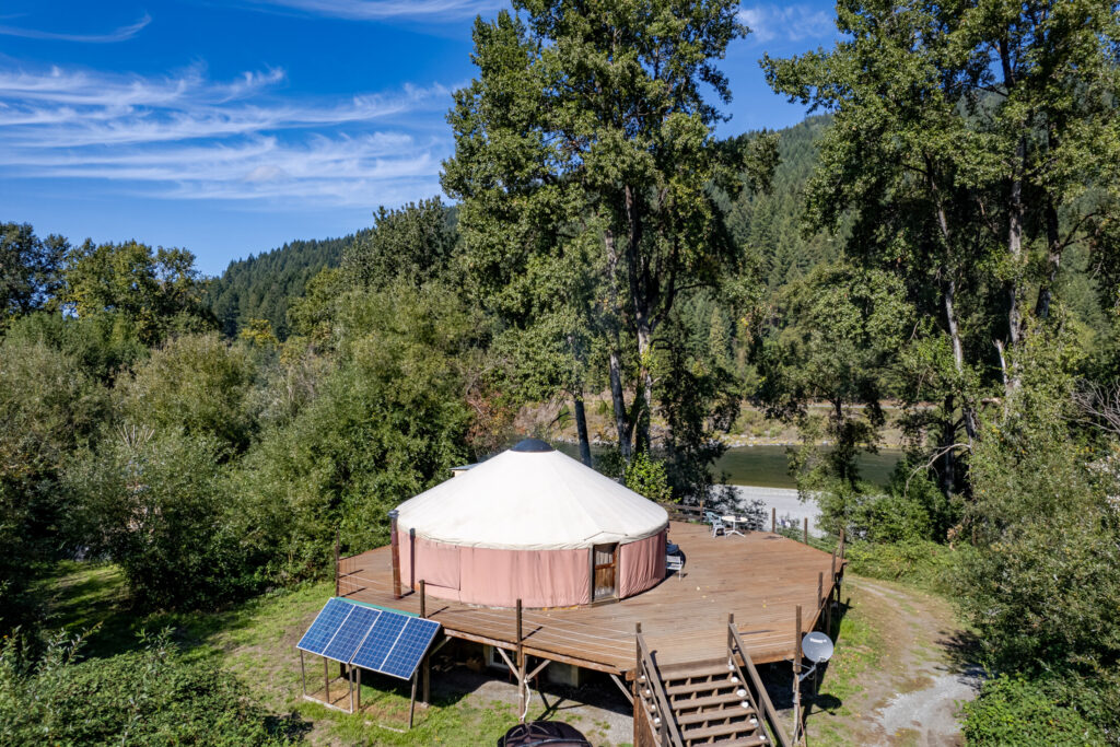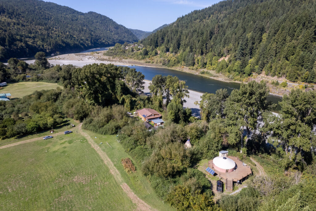 This is a rare find in Humboldt County, hidden away on the banks of the wild Klamath River. Your blissful communal residential living compound spreads across 38 peaceful acres, with cabins, camp sites, yurts and a bathhouse. Created as a sustainable retreat center, you can turn it into the community you envisioned. Dreams do come true! You traverse a mountain road through a redwood forest and over a mountain, down into the Klamath River valley. Sustainable living is your way of life here, with a fully off the grid life supported by a spring fed water system, solar power, propane, and wood stoves. There is room for a communal crowd, or space for solitude. The charming Main House with 2 bedrooms, and a huge screened dining hall greets you. The BARN has two-bedrooms with a balcony, above, and the ground floor is a workshop with tool storage. The nearby BLUE and Pumpkin Cottages, with lofts, wood stoves, and kitchenettes, have a double YELLOW BATH HOUSE tucked between them. Wander down to the five-acre meadow to pick your breakfast from an organic, fifty-tree ORCHARD, bursting with apples, peaches, pears, cherries, plums, persimmons, apricots, and grapes. Your land extends across the river. Swim, fish, kayak, or just laze on the wide pebble beach, as the river sparkles in the sun. The winterized log cabin LODGE, with high ceilings, and wraparound wide covered porches sits in a garden overlooking the river, with a large workshop behind it. The soulful hideaway two-story, 30-foot RIVERVIEW YURT perches above the river on a 50 x 50-foot deck, where the river lulls you to sleep at night. The shower and bathhouse on the deck offer a picture window view of the river. Down the spiral staircase there’s a large full kitchen with room for dining and living. Spend the evenings watching the Black tail deer graze in the meadow. The owner has earned six figures annually hosting Airbnb and Hipcamp. While you’re nestled here among the mountains, the nearest small town, Orick, is an hour’s drive away. It’s wild and beautiful. The water flows freely out of the mountain. The wild and beautiful Northern California coast is calling you!