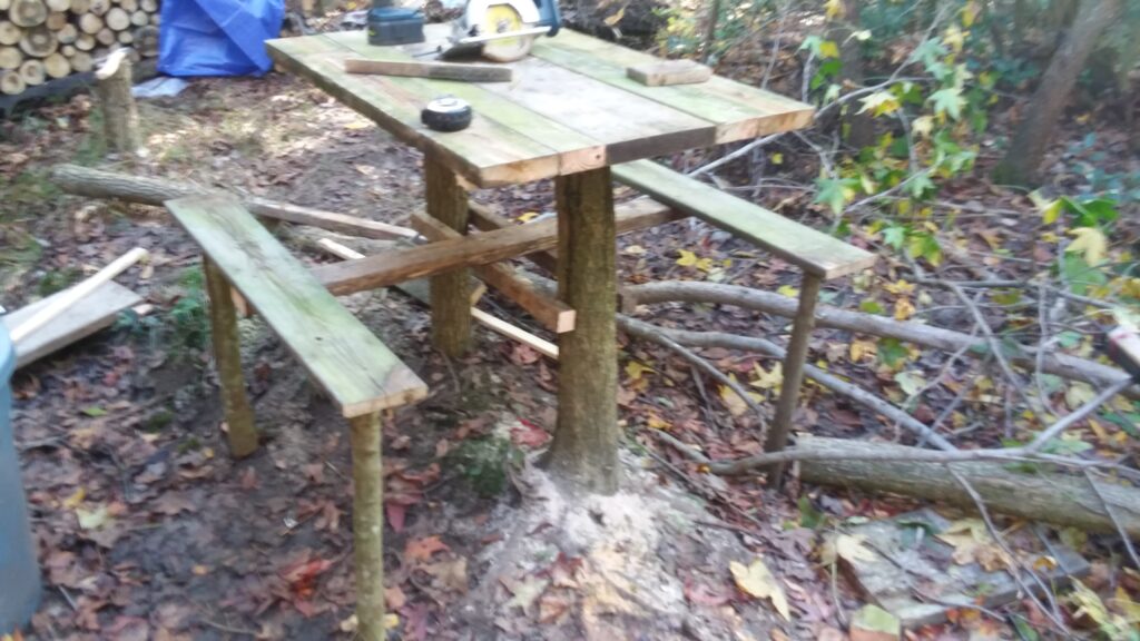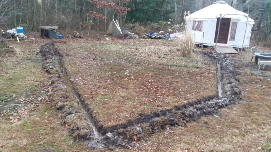 Over the past eight months the property has been transformed to include a stick built tiny house cabin, demo – restoration – addition – and upgrade of an existing off-grid yurt, very early season planning and creation of a large garden area including a tiny greenhouse for seeding, creation of more than half a mile of nature trail showcasing features and history of the property, a solar array for the tiny house with a shared 475 gallon rain water cistern, a fire pit with gathering and horseshoes activity area, many trenches and flow paths for storm run-off – flood control/prevention – and garden irrigation, a long driveway for parking from an old – overgrown – and abandoned logging trail, natural ponding that will soon become a permanent year round pond with fish, firewood found and collected to be cut and processed and ready for use, many spots for either open grass – wooded – or primitive camping, and more.