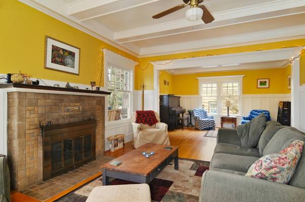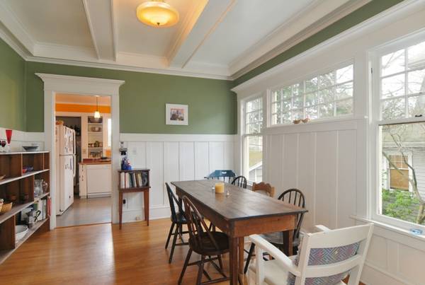 The house is on three floors plus a basement. The main floor consists of the kitchen, large living room offset from a substantial dinning room by sliding pocket doors. The whole main floor has wainscoting. All 4 levels have beautiful hardwood floor. 2 full baths. One 3/4 bath in basement.