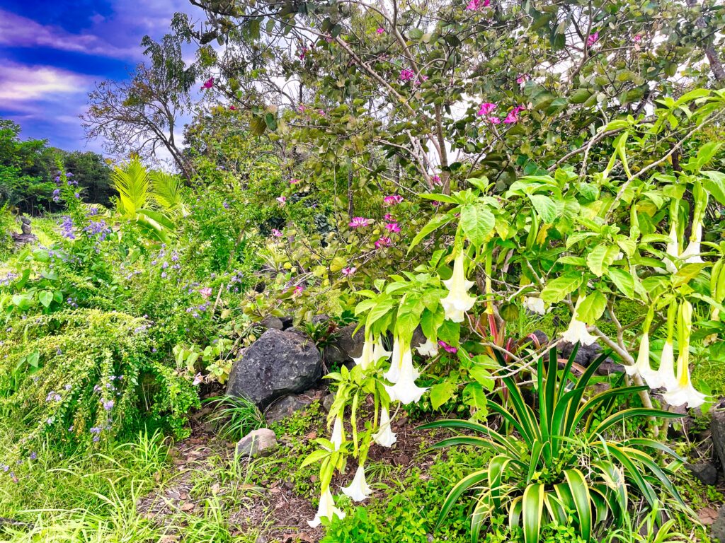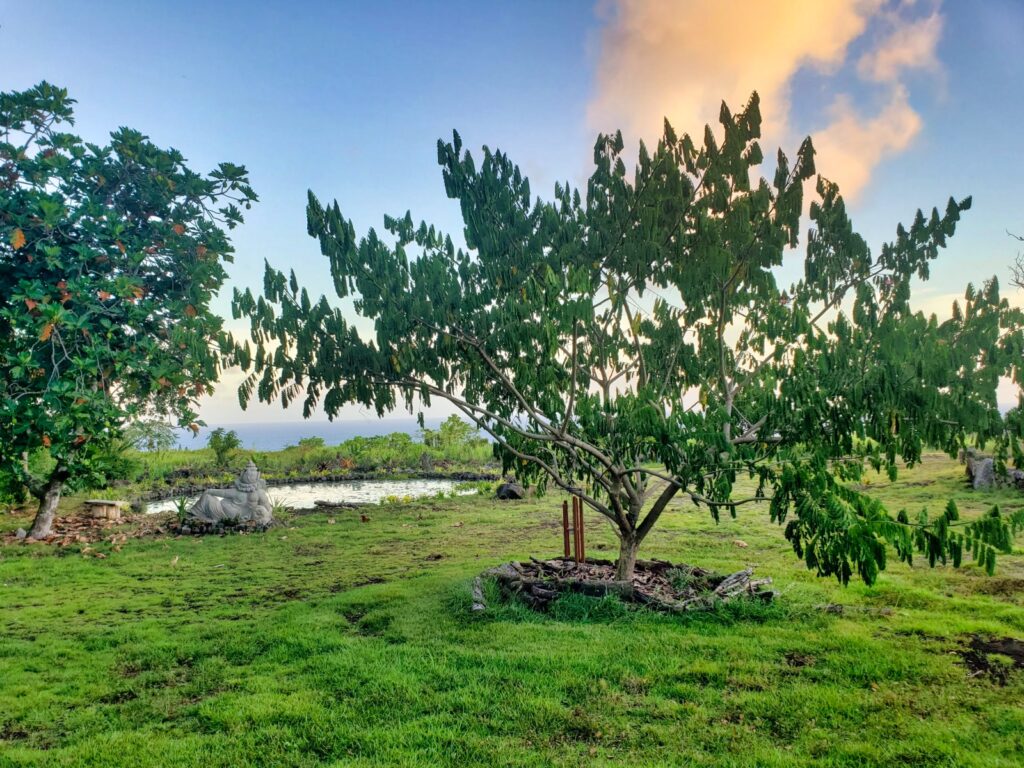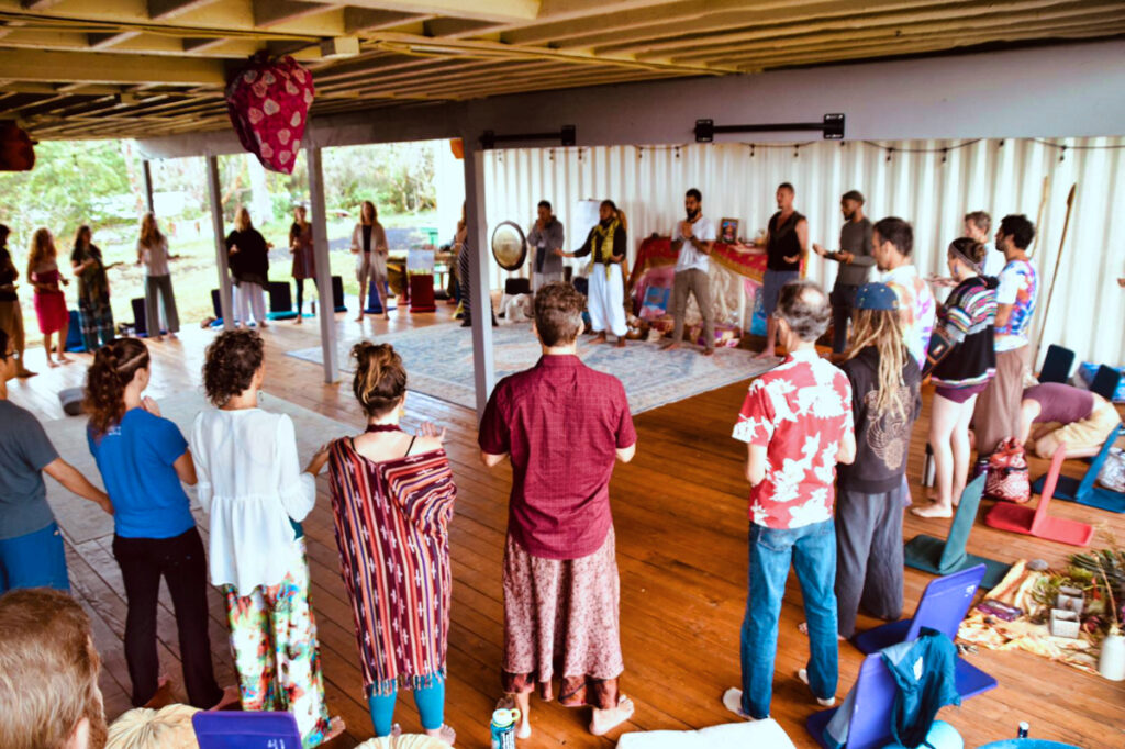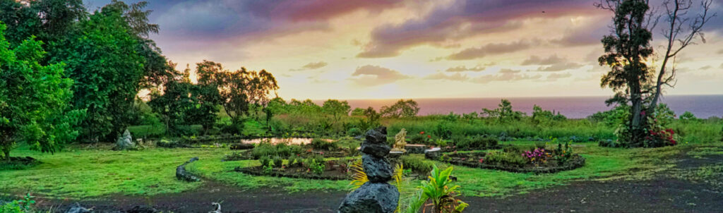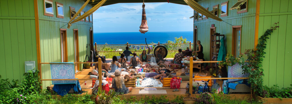 Our community, Sundari Farm and Gardens is located on the Big Island of Hawaii. It’s very rural here, but in a pretty progressive neighborhood with lots of dance, yoga and workshops. Our 10 acre land has sweeping ocean views, fruit trees, statues and gardens. We have a six bedroom house, a four bedroom house, a five person dorm for worktraders and a standalone cabin. We’re currently constructing another standalone cabin. We also have two event spaces and host weekly ecstatic dance, Sunday morning song circle along with various other concerts and workshops. We also have a large spa with a swimming pool, hot tub, sauna and cold plunge.