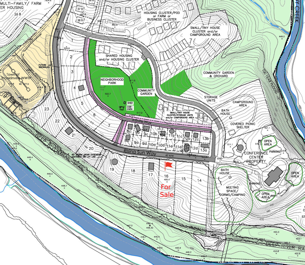 Ready-to-build lot for sale in diverse ecovillage, Central NC