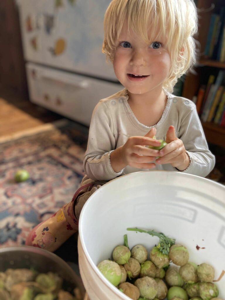Imagine waking up (for work, a personal or group trip, or just to hang out) and having 2-3 adults join you, helping you along the way with childcare, your breakfast, shoveling your car out of the snow, and whatever else. You check in throughout the day to coordinate on logistical needs, share emotions, or just for companionship. And at the end of the day, everyone story-tells at the evening meal. In our experience, the challenge of *having* to interact with each other for our personal needs is what pushes a group to become truly intimate and high functioning. We understand the inevitable discomfort/figuring out of boundaries that this brings up, and see it as a necessary part of the community-building process, and conscious parenting a gateway to healing and preventing legacies of childhood trauma.