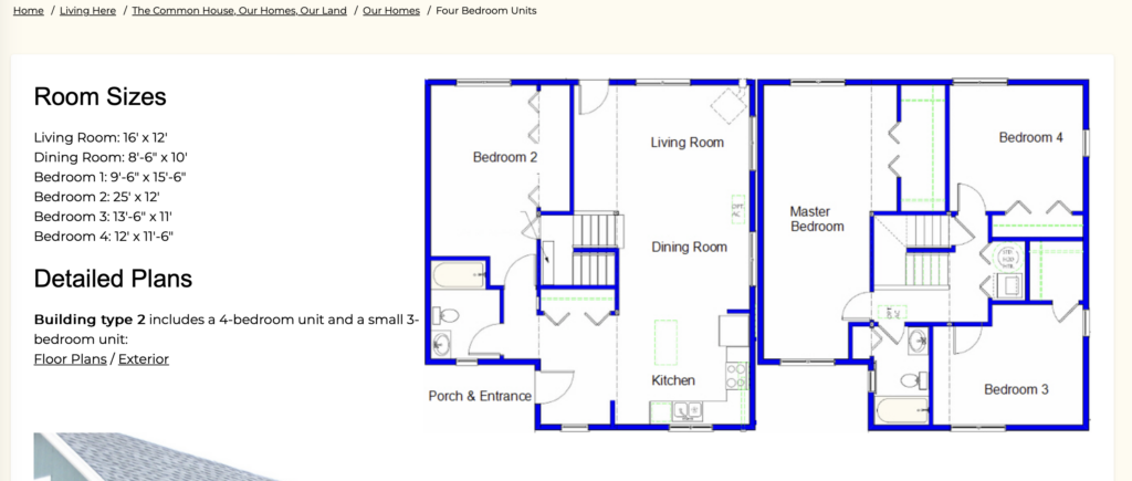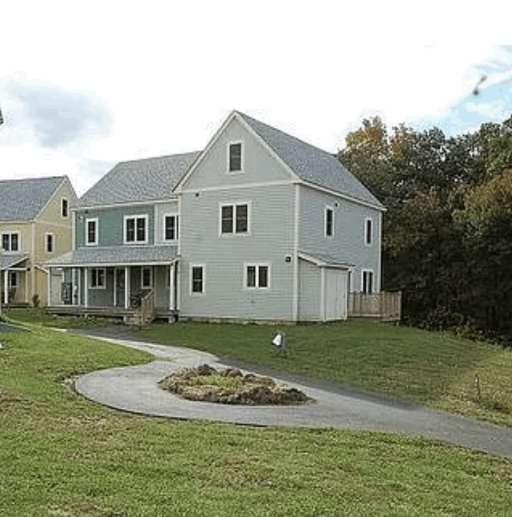 There is space for 4 individuals or small households to each have a private bedroom along with a shared kitchen, living room, and finished attic. There is also a large common house in the larger community.
