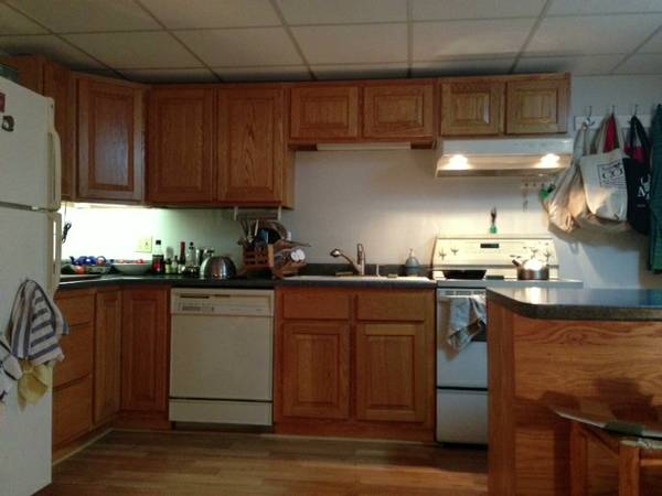 The cozy one-bedroom, 475-square-foot basement apartment with a bathroom across the hall in the basement features a full kitchen with a dishwasher and a very large closet off the bedroom. Windows along one side of the apartment facing the mountains fill the apartment with light. The shared working basement contains a woodshop, cold room, seedling starting space, washer, and dryer. Asking price: $95,000.