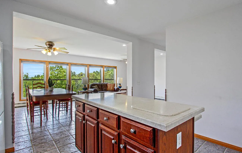 The main level is of modular construction and was designed for single-floor living. It includes the kitchen, a great room (with access to a deck), 1/2 bathroom, laundry, a bedroom with private access a 3/4 bathroom with a roll-in shower, and an office/den space.