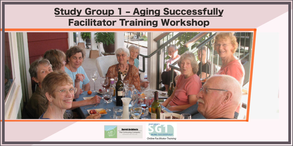 The SG1 Facilitator Training offers experiential learning on aging issues and demonstrates the logistics of creating a supportive housing community. Limited to 20 people, the course allows for one-on-one dialogue and small group exercises, given at a pace tailored to each and every one involved. Participants will learn how to organize and motivate senior groups to take an active role in their housing choices. SG1 is the number one way to get seniors conscious of the issues, out of denial, and proactive enough to consider senior cohousing. It is often said that if you ask 100 random seniors, would you consider senior cohousing, maybe one will say yes. If you ask 100 seniors who have taken Study Group One, 40 will say yes.