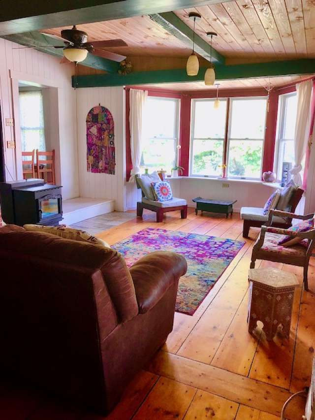 The main house features 4 bedrooms, 3 baths, two large living rooms, and many private spaces to relax and be at peace. The carriage house features two apartments (total of 3 bedrooms, two baths), a massage/therapy room, a workshop, and much storage space. The attached barn has two stalls, an open pen and direct access to back fields. The later field has been home to organic veggies, a hemp farm and includes a small cabin with water, electric and outdoor shower.
