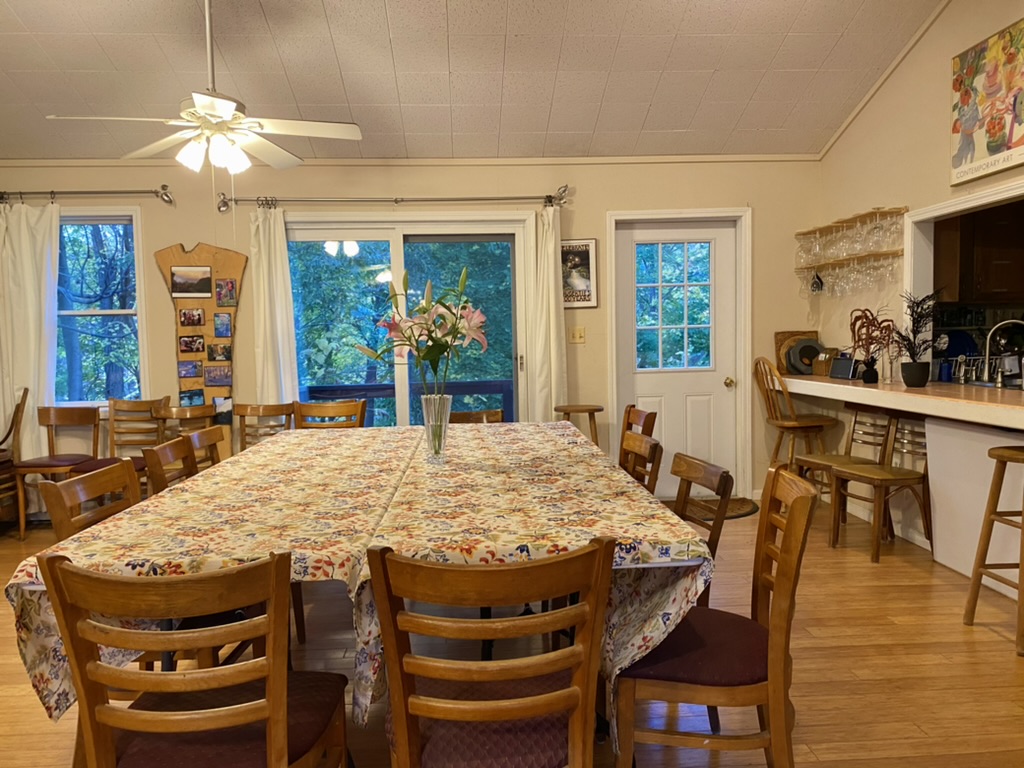 It is a multi-generational community with opportunities for communal meals (up to 3 meals/week at times), weekly “happy hour” socializing, Sunday potlucks, or work/play parties.
