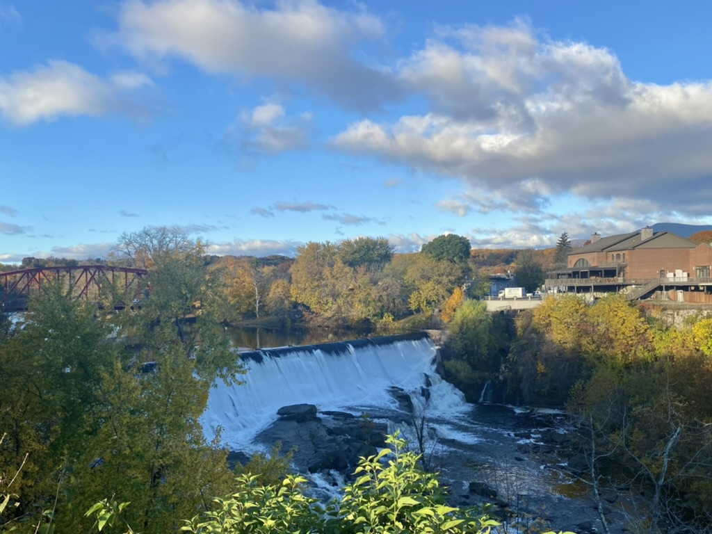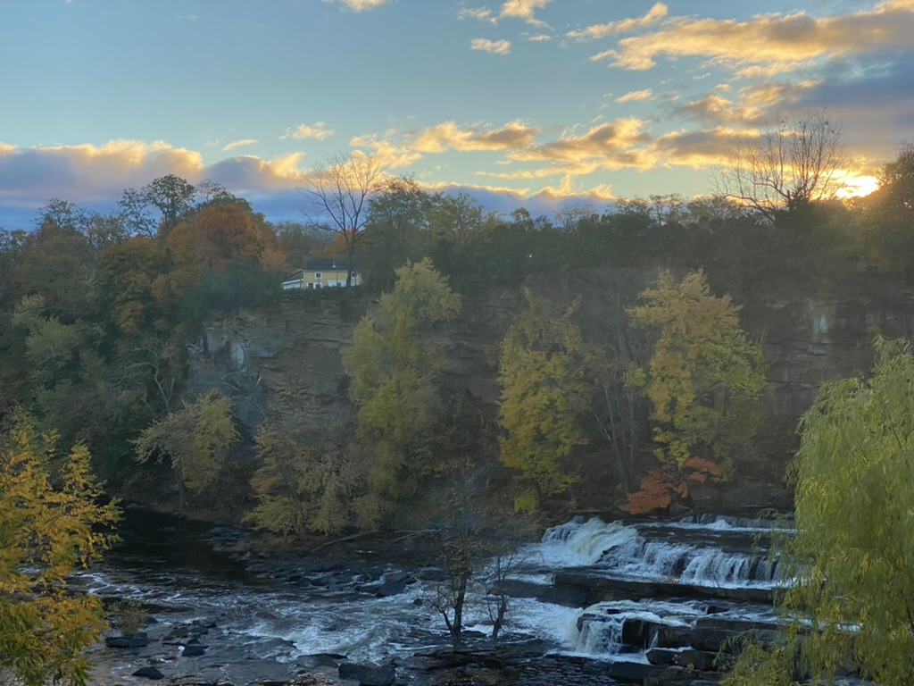 This home rests atop the sunny bluestone bluffs, as seen in the sunrise photo from across the creek. With the terraced side garden, you could have an outdoor dining space overlooking a waterfall with the Catskill Mountains on the horizon.