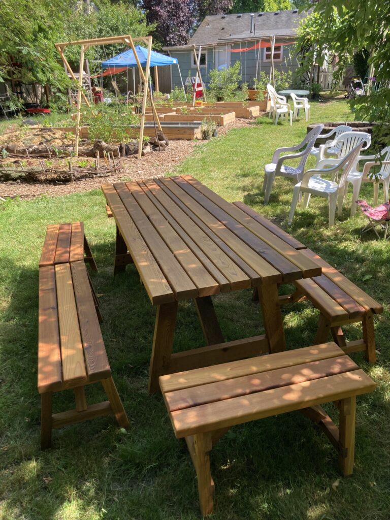 There are currently 2 tiny houses (maybe you’ll be the 3rd!) on our land plus 2 traditional sized houses (one with a laundry, indoor community space, kitchen & bulk pantry), a wood shop, bike shop, bike storage, and ample, generous garden space!