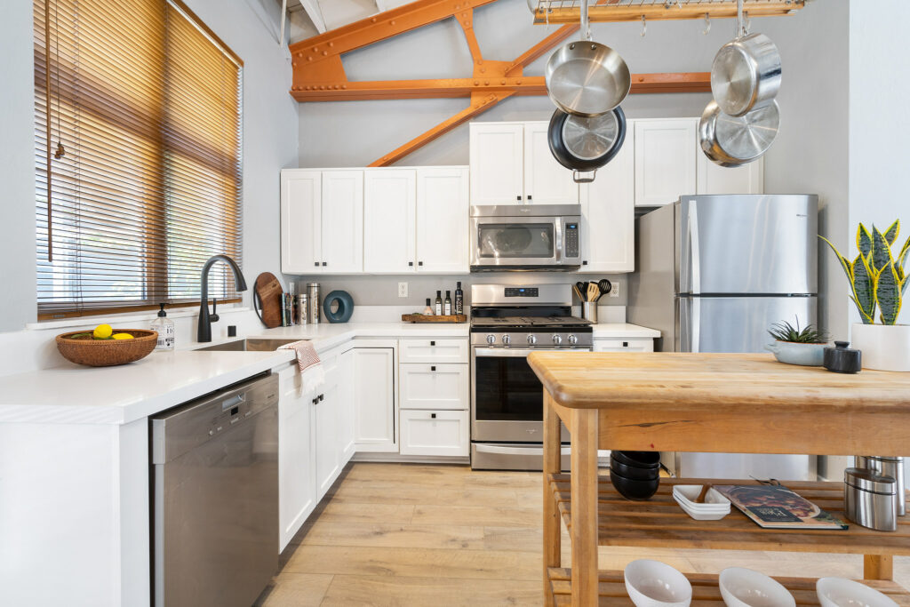 This gorgeous condo features 2 Bedrooms + Loft (w/ full ensuite) & 2 Bathrooms! Soaring ceilings w/ bold architectural elements & skylights blend chic modern amenities, artistry & culture. Stunning renovation includes luxury vinyl plank floors, quartz counters, brand new stainless steel appliances, interior paint & fixtures, etc. The Swanâs Market mixed-use design, an award-winning collaboration, creates a private live/work sanctuary amidst an urban oasis complete w/ garden, guest suite, clubhouse & chef’s kitchen, playroom, workshop & exercise spaces! Cohousing association brings sustainable & intentional community into the heart of Old Oakland – know your neighbors, walker’s paradise to award winning dining, farmers market & shops. Secure garage parking space, extra storage. In-Unit Laundry Hookups. Easy commute access (580/880/980/24)/12th St BART, 99 Walkscore. Close to everything you love about the Bay Area!