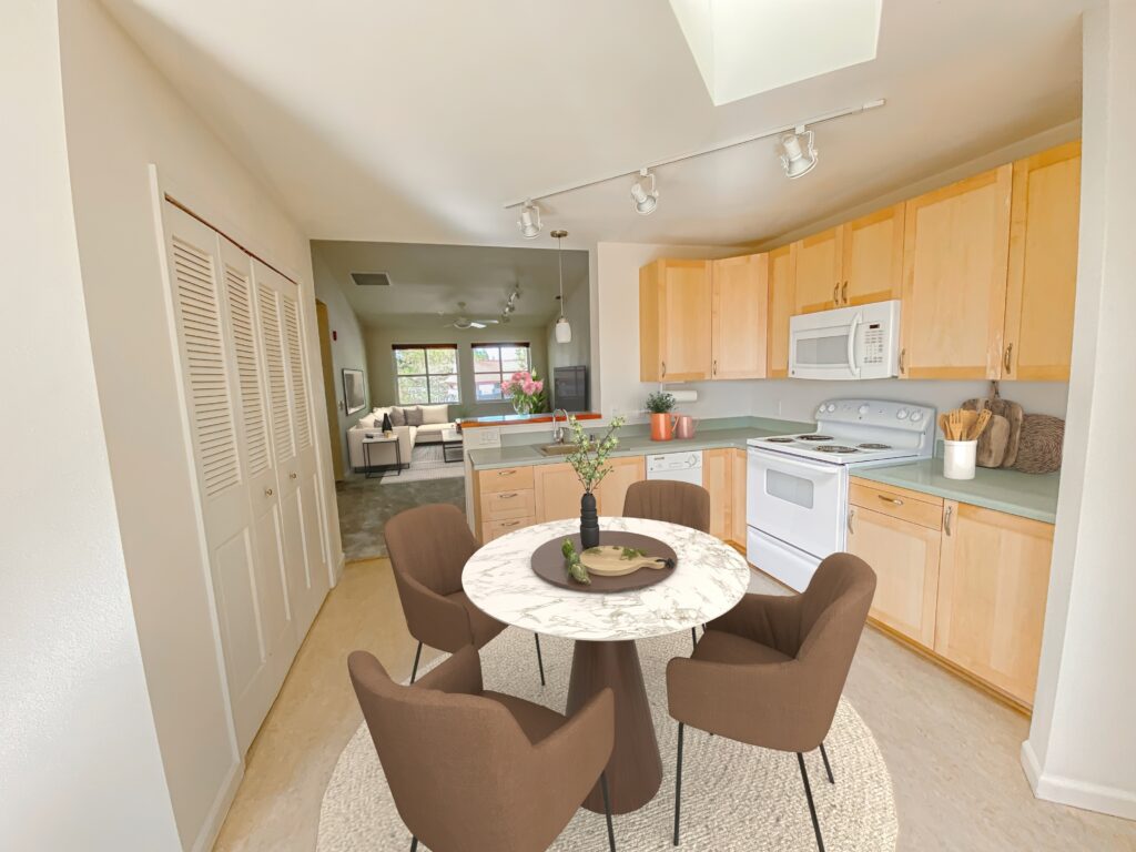 | • Open, Light-Filled Living Space – Cathedral ceilings & skylight create a bright, airy home |