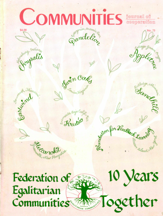 Communities Magazine #73 (Winter 1987) – Federation of Egalitarian Communities$4.00 Format FormatDigital DownloadClear Communities Magazine #73 (Winter 1987) - Federation of Egalitarian Communities quantity Add to cart Categories: 1980s, All Titles Description Description Federation of Egalitarian Communities – Ten Years Social, Gender, Political, Organizational Issues. Digital Edition. You may also like… Sale! Wisdom of Communities: Complete Setby Foundation for Intentional Community Starting From $50.00 Select options This product has multiple variants. The options may be chosen on the product page Communities Directory Book, Edition VII (2016)by Foundation for Intentional Community Starting From $15.00 Select options This product has multiple variants. The options may be chosen on the product page