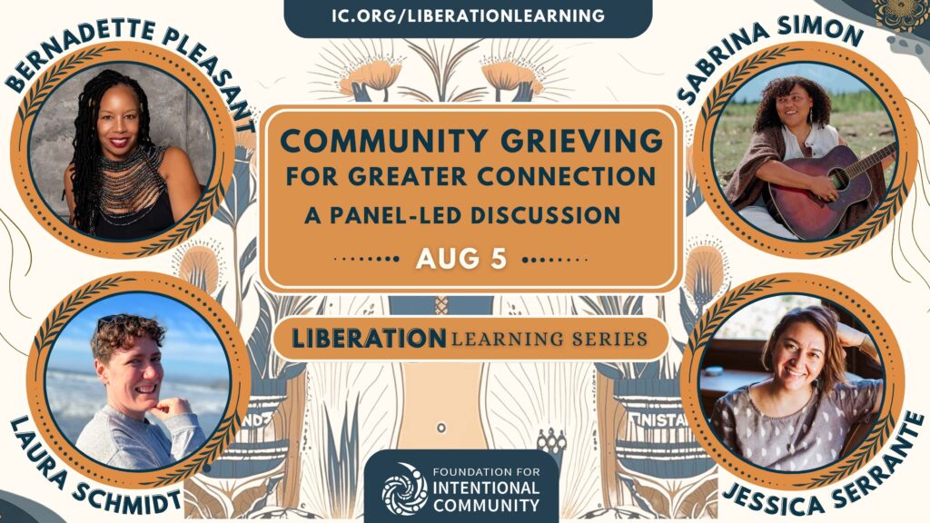 Join us to untangle the painful yet powerful work of processing grief within community in this panel discussion with LaURa Schmidt, Jessica Serrante, and Bernadette Pleasant, facilitated by FIC’s Programs Director and community grief-tender, Sabrina Simon.