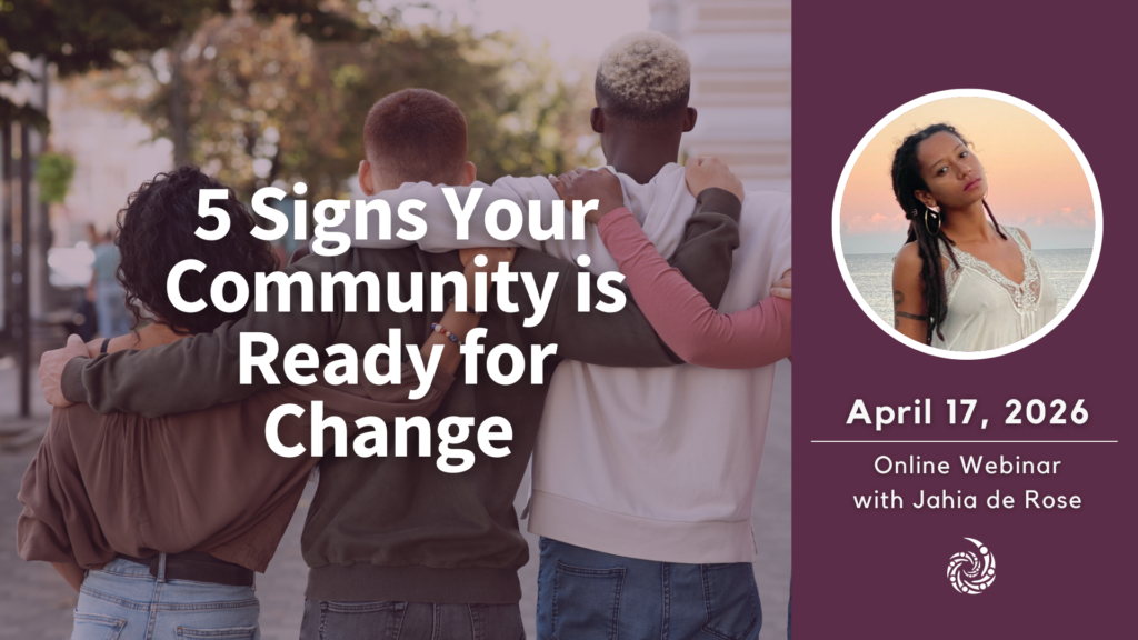 In this webinar, participants will increase their ability to identify the 5 common signs through examples of real scenarios where communities were faced with a pivotal moment for transformation. Jahia de Rose will invite attendees to reflect on their own experiences regarding the need for change in their community through reflection questions adapted from The Audre Lorde Questionnaire to Oneself.