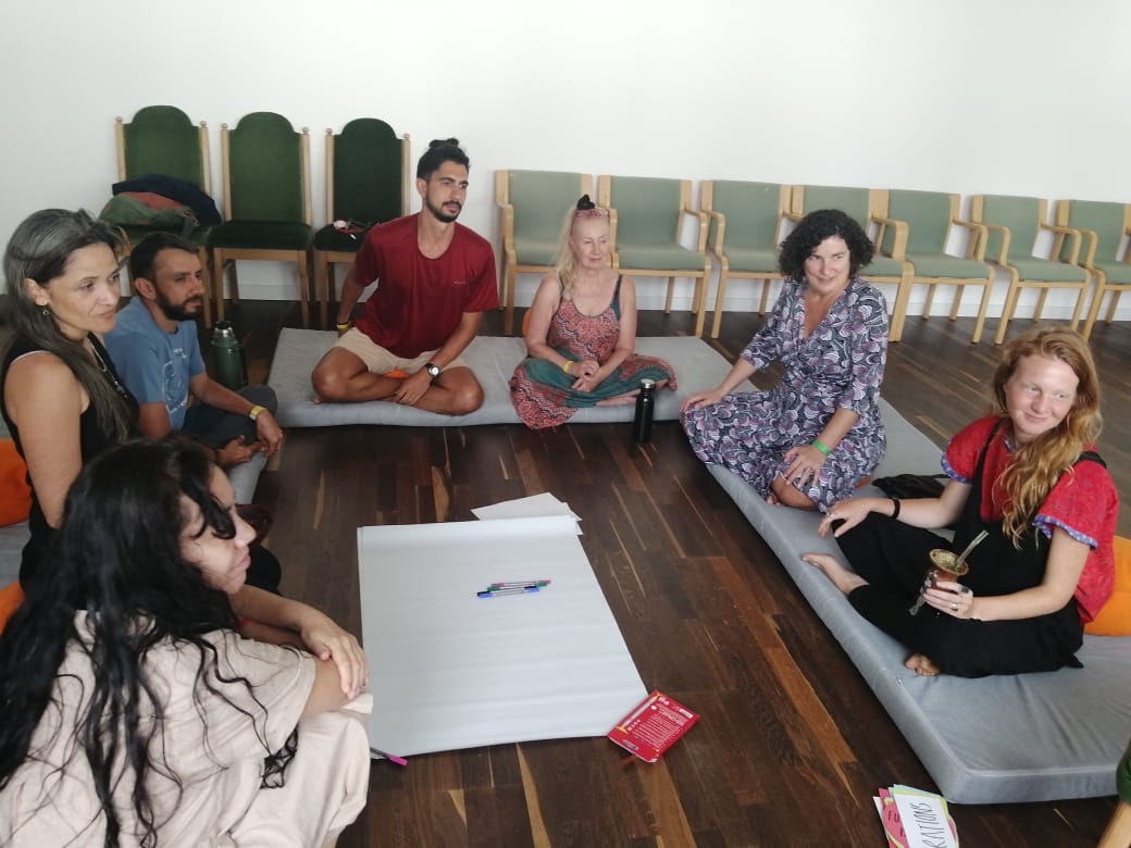 And workshops were only a small part of the gathering! There was also an amazing “Meet the Ecovillages Marketplace”, with over 50 communities and networks represented, a Cacao Ceremony, Ecstatic and “Non Linear” Dance, Improv Theater, Film Screenings, Singing Circles, Live Concerts, a Technology Expo, Emergent (Open Space) Programs, Sharing Groups, an Emotional Support Tent, a 3-day communities council prior to the event, and even something called Schmetterlingsbewegung (fortunately with English Translation 🤣).