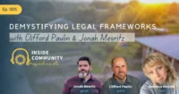 Posted on March 12, 2022 byDemystifying Legal Frameworks with Clifford Paulin & Jonah Mesritz Inside Community Podcast — Ep. 005 Do legal structures and documents make your head spin? Fear not! In this episode we’re… Read More