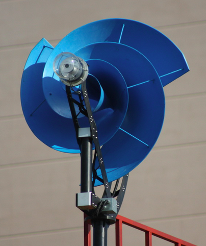 The Archimedes is a unique new design in alternative energy. It is a nautilus shaped wind turbine, in that it’s blades are shaped like a Nautilus shell. This design allows it to point directly into the wind to capture the most amount of energy, while remarkably producing very little sound.