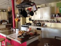 What struck me first, when I stepped into Medicine Wheel’s spacious kitchen/dining room, the morning we arrived, was a surge of warmth and welcome. Colorfully tiled counters, floors, and backsplashes, plus quirks like movable ceiling panels and a hot pink post rising through a central island, revealed the loving particularity—and exuberant peculiarity—with which this house had been built. South-facing windows let in floods of winter sun. Resting on the bench by the greenhouse door, after my friend had left for her mentor’s place, I imbibed the blessed quiet, while noting all I wasn’t hearing: The roar of engines. The blare of sirens. The hum, squawk, trill of people’s electronic prostheses. I heard, instead, voices from the floor above, footsteps overhead. I felt the embrace of a space infused originally, then over and over, with the touch of human hands, the care of human hearts.
